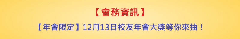 2025校友年會12月13日(六)上午11:00起於台北國際會議中心3樓宴會廳,我們不見不散唷!