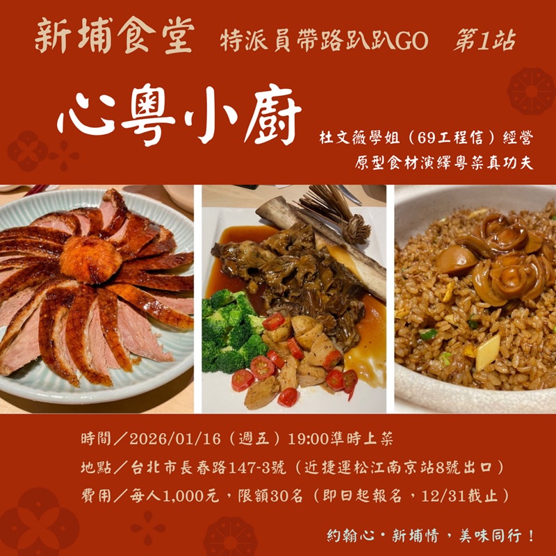 新埔71級同學2025年最後一季的麻吉聚會,在楊繼盛(71電機信)、張志慶(71工程忠)及陳建宏(71工程忠)等3位爐主學長精心安排下,特別選在杜文薇學姐(69工程)開設的《心粵小廚》溫馨相聚,滿桌佳餚、菜色精緻、氣氛熱絡、笑聲滿堂,延續43年的友情在熱鬧中再度升溫。