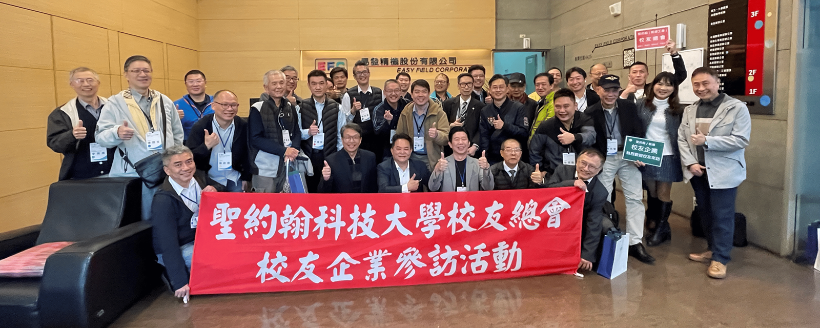校友總會3月6日舉辦企業參訪,在「易發集團」董事長羅文進學長的熱情接待下,32位校友及秘書處人員滿懷期待踏入旗下的「東野精機」與「易發精機」兩大智造雙雄工廠參觀。