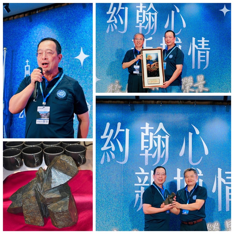 校友總會於 12 月 13 日舉辦2025校友年會,會中秘書處特別致贈一尊象徵「格局、定力與承擔」的赤鐵丸石雕,給即將完成任期的校友總會闕玖榮理事長,感謝其兩年來為校友總會付出的心力與領導。