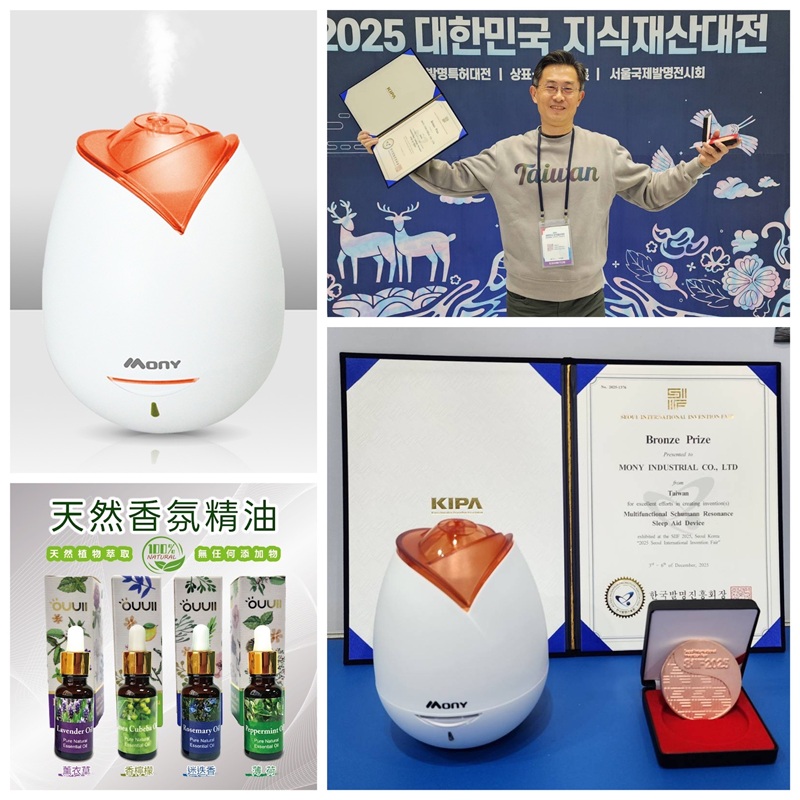 由瑞虹科技研發、吳民樺學長親自投入設計的「多功能舒曼波助眠機」,近期於韓國發明展榮獲 銅牌獎 與 特別獎 肯定,是一款專為現代人睡眠困擾打造的生活型助眠裝置。