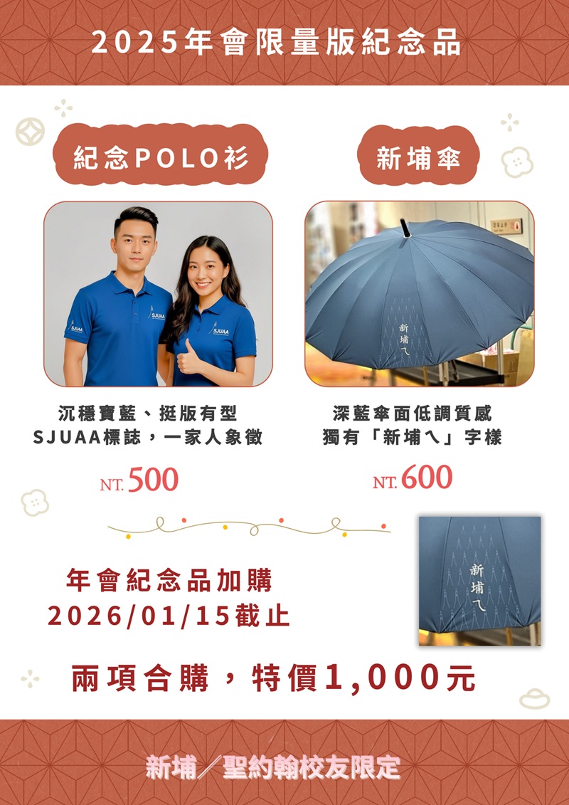 2025校友年會籌備小組精心製作兩件最有「新埔魂」的象徵~專屬POLO衫及新埔ㄟ好傘。