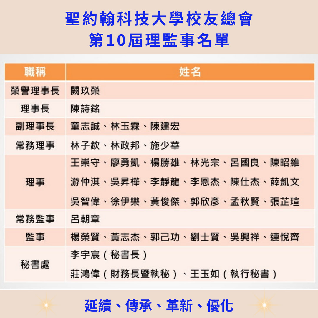 【共啟新局】聖約翰科技大學校友總會第10屆理監事名單公布