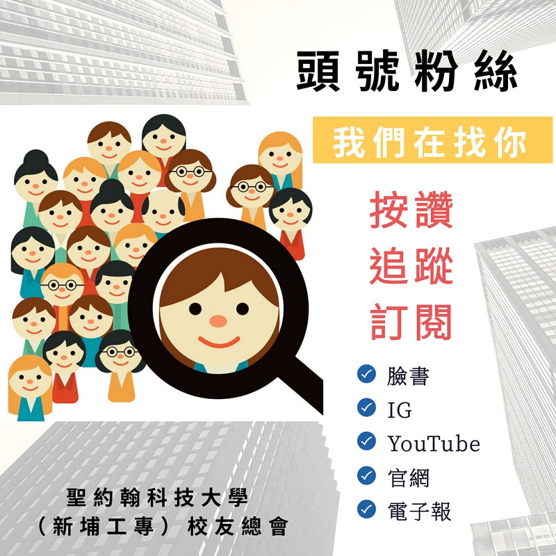 歡迎您邀請更多班上同學加入我們,讓新埔及聖約翰校友的力量能夠聚沙成塔,進一步發揮各地校友會交流團結及互助的功能,共同壯大校友會。