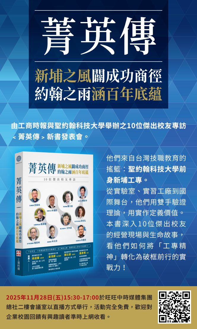 聖約翰科技大學與工商時報合作出版的校友人物專書《菁英傳》於2025年11月28日隆重發表。10位傑出校友親臨現場共同見證。本書被視為全台技職體系首創、並極少數進入主流出版通路的深度人物專書,以跨界合作的模式成功引領技職出版新典範。