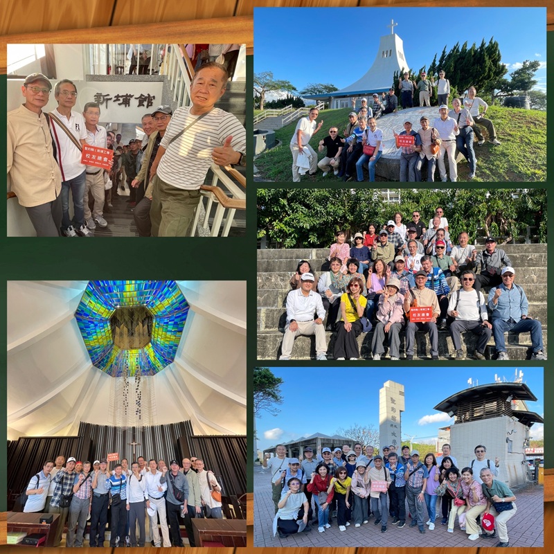 大家一路從聖公樓出發,重返熟悉的林蔭大道,在風雨球場旁的階梯坐下留影,也在新埔校徽地標、新埔館階梯及降臨堂前與堂內拍下珍貴的團體照。每走過一處,彷彿就喚醒一段往日的場景:上課鐘聲、操場的吶喊、下課後一起走過的那片樹影。