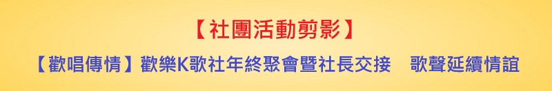 在陳建宏副理事長的見證下,原任社長孟秋賢學姐正式將K歌社布條交接給新任社長吳育潼學姐,象徵社團傳承的延續,也預告新氣象的展開。