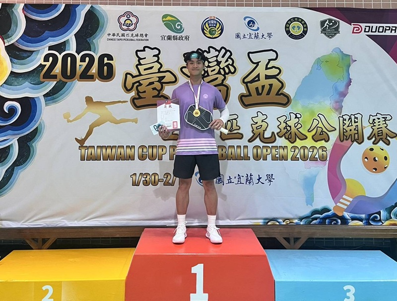 近年來風靡全球的「匹克球」(Pickleball)熱潮席捲台灣,聖約翰科技大學休閒運動與觀光管理系洞燭機先,積極引進並重點培育相關人才,如今開花結果、佳績頻傳。系上重點培訓選手李亯和同學,不但在甫落幕的「2026年台灣盃全國匹克球公開賽」中勇奪大專公開組男子單打冠軍,更在過去一年內征戰韓國、馬來西亞及香港等多項國際賽事,屢獲金銀牌殊榮。