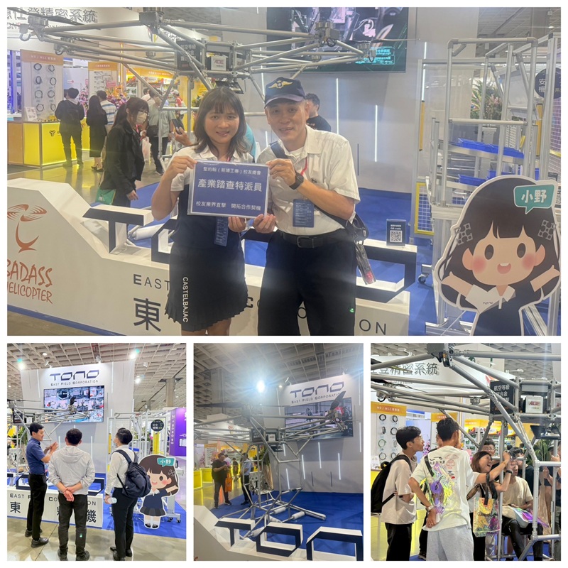 在「2025台北國際自動化工業大展」中,曾琡珺學姐(78工程)以副總身分親自招呼來賓,展現熱情與專業。攤位上除了展示公司核心產品--「鋁擠型組裝專業工作台」與「可翻轉配電箱專用工作台」之外,最吸引目光的莫過於一架「無人機」。
